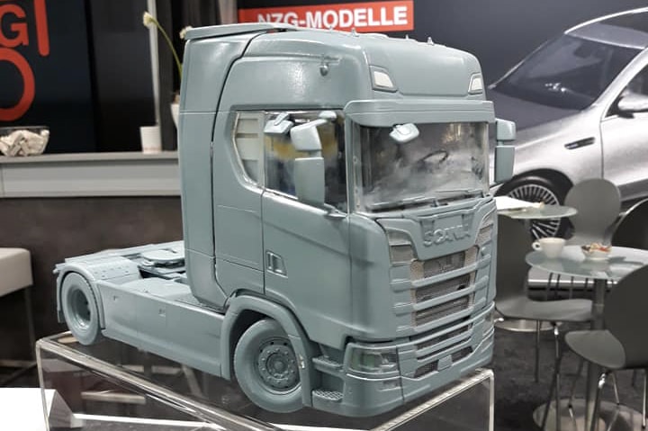 Ce n’est plus un secret, il y a de plus en plus de camions et d’utilitaires à l’échelle 1/18. D’ailleurs, vous pourrez très bientôt en découvrir sur notre chaine Youtube. Cette fois, c’est NZG qui proposera un modèle réduit à l’échelle 1/18 du Scania 730 S. Ce modèle hérite de la nouvelle terminologie puisqu’il s’appelait initialement S 730. Un conflit avec Daimler a donc conduit à un nouveau nom pour le modèle S. NZG ira assez loin dans le détail et on apprécie que tous les ouvrants soient représentés. La cabine pourra même être basculée en avant pour admirer le moteur V8 du plus puissant des Scania de série. Mais ne soyez pas trop pressé car la mise en production n’est pas encore programmée. Il faudra un budget d’environ 300 €. Dans un registre plus accessible, vous avez toujours la miniature de Welly à l’échelle 1/64 ! Quant à ce modèle NZG, il sera proposé dans un premier temps en version 4×2. Nous n’avons pas connaissance d’une future version 6×2-4 ou 6×4.