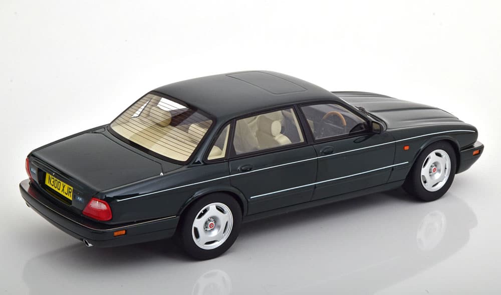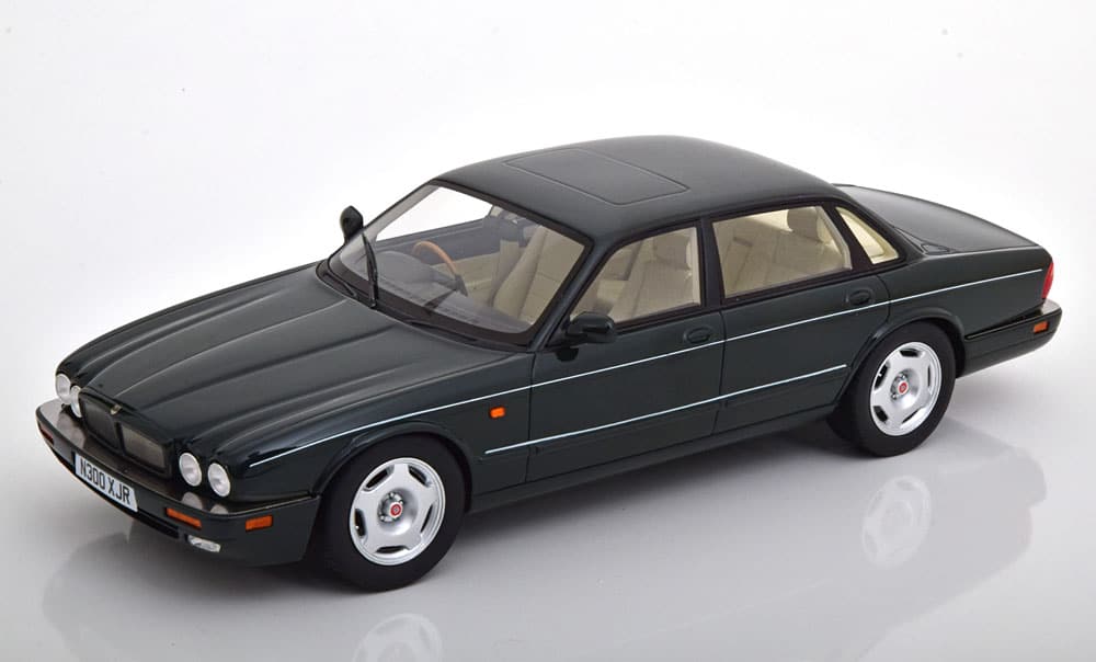 Quand on parle de belles anglaises, il est assez difficile de ne pas évoquer la Jaguar XJ. Cult Scale vient de livrer ses premiers modèles réduits de la XJR type X300, à l’échelle 1/18. Cette magnifique miniature, en résine, arbore une robe vert anglaise. L’intérieur, de couleur crème est bien reproduit. Et même s’il n’y a pas d’ouvrants, on distingue assez bien certains attributs, comme le volant cerclé de ronce de noyer, les commodos ou encore la belle sellerie. Cult Scale Models a choisi de reproduire spécifiquement cette version R de 1995 qui dispose d’un moteur V8 compresseur de 375 chevaux. Pour renforcer le réalisme, on note de belles d’immatriculation anglaises et bien sûr une boîte de présentation de couleur verte. Ce modèle 1/18 est déjà disponible et présent dans la plupart des boutiques en ligne, dont Modelissimo. Le prix de vente est fixé à 159,95 €. Référence : CML052-2. Ce modèle avait déjà été édité en noir par le passé.