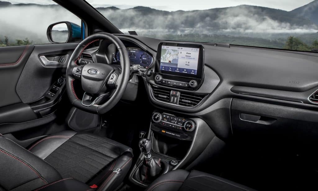 En rentrant dans le Ford Puma, on n’est pas réellement dépaysé. Nous ne pouvons pas parler d’un manque d’innovation, car nous avons tout de même droit à une vraie dalle de 12,3 pouces en résolution HD en guise de compteurs, se parant d’une interface et d’animations franchement nettes et réussies, mais n’est pas entièrement personnalisable (la navigation ne s’y affiche pas comme sur les cockpit Audi ou Peugeot, par exemple). La planche de bord se défait de plastiques laqués pour retrouver une imitation carbone ou bois en fonction de la finition choisie. Enfin, les panneaux de portières avant s’habillent d’un habillage en tissu remontant jusqu’au-dessus, ce que les grands gabarits posant leur coude contre la vitre apprécieront. Un chouette bon en avant à notifier, donc.