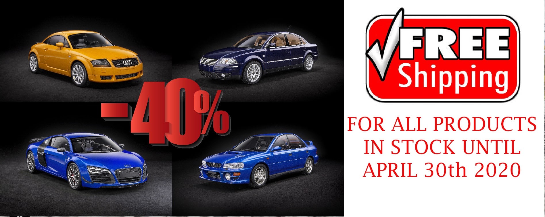 Si vous avez toujours rêvé d’avoir une miniature signée DNA Collectibles dans votre collection, c’est le moment ! En ce moment, vous pouvez bénéficier de 40% de remise sur quatre modèles phares : l’Audi R8 LMX de couleur bleue, l’Audi TT (8L) 3.2 V6 de couleur orange, la Subaru Impreza GT Turbo 2000 de couleur bleue et la Volkswagen Passat W8 en bleu foncé. Les prix passent ainsi à 99,00 €, auxquels il faut ajouter 19,80 € de taxe par miniature. En revanche, ces offres sont cumulables à une autre en cours : les frais de livraison sont offerts partout en Europe. Pour rappel, les miniatures DNA sont en résine. Elles bénéficient d’une très belle qualité de fabrication et sont limitées à 320 exemplaires numérotés chacune. C’est donc le moment idéal pour vous laisser séduire ! Les frais de port offerts ne sont valables que jusqu’au 30 avril 2020.