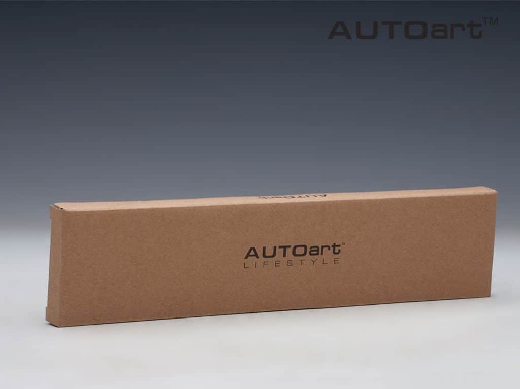 Il est assez fréquent de trouver des produits dérivés autres que des miniatures chez AUTOart. Cette fois, nous sommes tombés sur un double-décimètre qui reprend les lignes arrière d’une Porsche 911 GT3 RS. On retrouve au centre la double sortie d’échappement qui peut servir à la place ses doigts. Sur les côtés, prennent place des écopes. Une belle réinterprétation pour cette règle siglée « AUTOart ». Notons qu’elle indique les centimètres d’un côté et les pouces de l’autre. Présentée dans une élégante boîte en carton, cette règle sera vendue au prix unitaire de 20$, soit un petit peu plus de 18 €. Fraichement présenté, ce produit n’est pas encore disponible sur le marché. Quand on aime, mieux vaut ne pas compter… Référence : 49122.