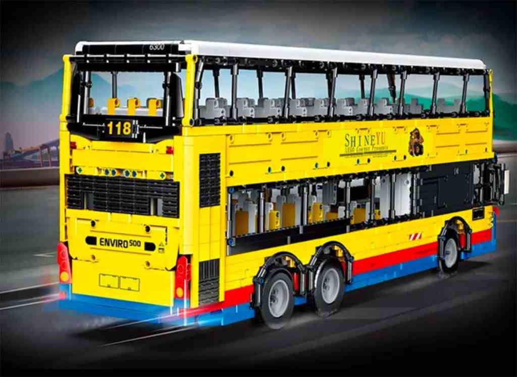 L’intérieur accueille un grand nombre de sièges, un escalier, un moteur fonctionnel et bien sûr, une direction complète. On notera que les portes sont fonctionnelles et commandables. En effet, plusieurs moteurs sont intégrés dans le modèle. Ce bus peut donc être commandé directement. Vous pourrez accéder à différentes fonctionnalités et même conduire ce bus qui pourra gravir des pentes allant jusqu’à 35°. Le soin accordé aux détails est remarquable et on comprend vite que l’on a affaire à un très gros set, digne de la gamme Technic de Lego. Vous pouvez dès maintenant réserver ce modèle au prix de 334 €. Un prix dans la fourchette haute, j’en conviens. Cette fois, inutile de prévoir davantage : la notice est incluse dans le prix, tout comme les frais d’expédition.