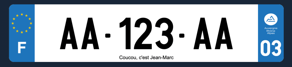 La bande droite comprend à la fois le numéro d’un département français mais aussi le logo régional correspondant. Vous pourrez donc opter pour votre département d’habitation, de naissance, de cœur ou tout simplement par choix esthétique. En effet, certains logos régionaux sont plus élégants que d’autres. À titre personnel, j’ai choisi le département 78 pour mes plaques d’immatriculation puisque le constructeur de ma voiture est implanté en France… dans les Yvelines ! Tout est permis et c’est donc une partie de personnalisation que vous pourrez exploiter. Oubliez les stickers à rajouter sur vos plaques, ils sont illégaux et ont une tenue très variable dans le temps.