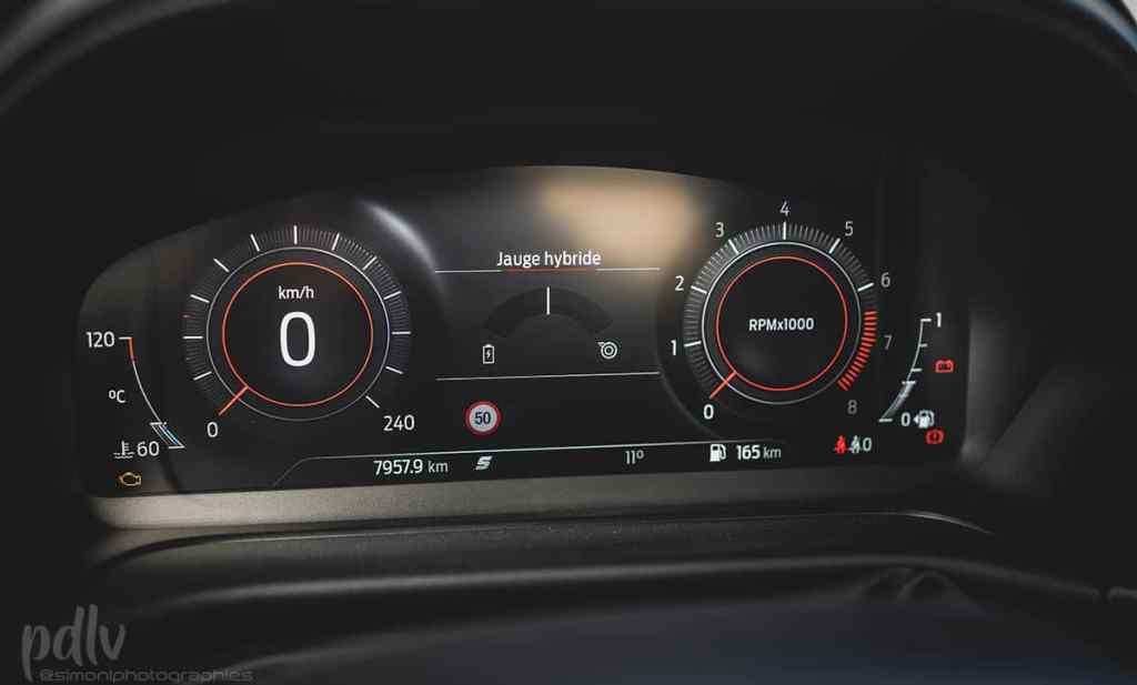 Malgré tout, la finition ST-Line X permet de profiter de nombreuses technologies appréciables, comme le régulateur de vitesse adaptatif, qui analyse le trafic, tout en affichant un visuel de Ford Mustang sur l’écran derrière le volant. La caméra de recul est d’ailleurs très précise, avec les lignes de guidage qui facilitent les créneaux. Sur autoroute, la conduite est sans difficulté, le système de prévention de collision est bien calibré tandis que la surveillance des angles morts est d’une précision remarquable. On notera aussi que les sièges ont une fonction massage au niveau des lombaires. Pas mal pour se détendre après une sortie off-road.