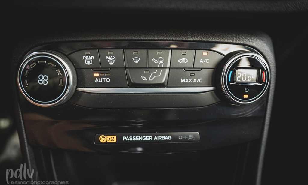 On retrouve ces surpiqures colorées sur le volant multifonctions, sur les contreportes mais aussi sur l’entourage du levier de vitesse. Les commandes sont bien disposées sur cette jolie planche de bord, reprise de la Fiesta. On découvre un écran tactile central de 8 pouces incluant le système SYNC 3. Un système numérique assez bien pensé, moderne dans sa présentation et plutôt fluide. On peut presque tout commander depuis cette interface et bien sûr, y connecter votre smartphone par le biais d’Android Auto ou Apple CarPlay. C’est rapide et facile d’autant plus qu’un chargeur à induction est de série.