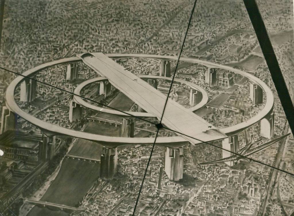 L’ingénieur André Basdevant demeure assez mystérieux, d’autant plus que l’homme possède des homonymes. Malgré tout, il élabora l’année suivante, en 1937, un projet de piste aérienne orientable, soutenue par plusieurs buildings. Une utopie tout aussi incroyable et pas forcément très gracieuse qui aurait clairement mal vieilli. Une illustration, visible ci-dessous, permet d’apprécier le projet.