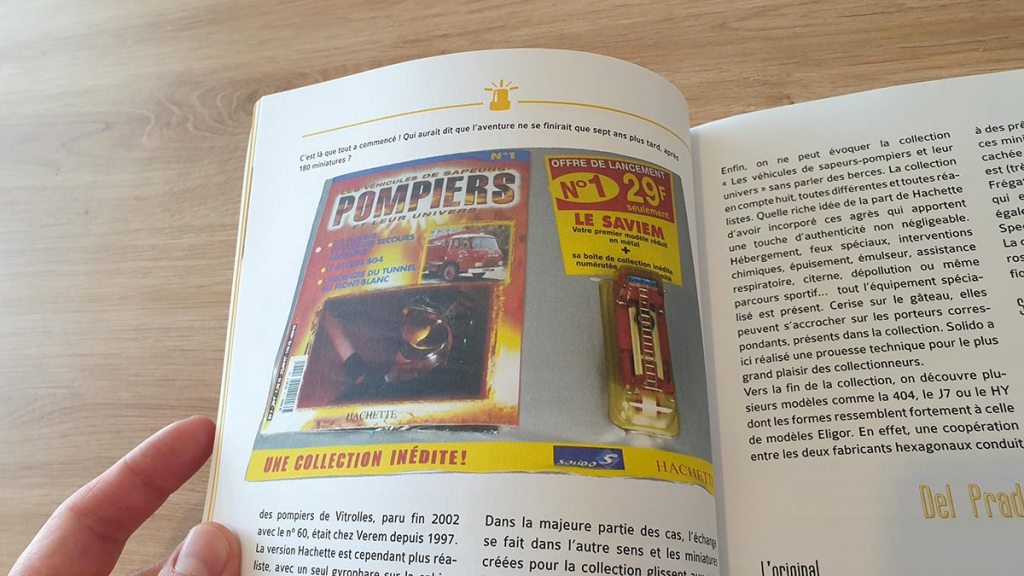 L’introduction, sur un fond jaune, captive directement. On apprend que ce sont les éditions Hachette qui ont été les premières à offrir une collection presse inhérente à l’automobile, avec comme accompagnement du fascicule, une 4 CV Solido. Par la suite, les collections presse se sont succédé à un rythme incroyable, aussi bien avec Hachette Collection, Altaya que DeAgostini ou Del Prado. D’ailleurs, j’ignorais totalement à quel point la thématique des véhicules de pompiers avait été développé. Gregory ne s’est pas contenté de référencer les collections français, il s’est ouvert à l’Europe en offrant une approche contextualisée. Outre les photos des miniatures, on trouve un grand nombre de détails sur la collection en elle-même, son mode de distribution, les abonnements, les échelles proposées et les modèles les plus emblématiques.