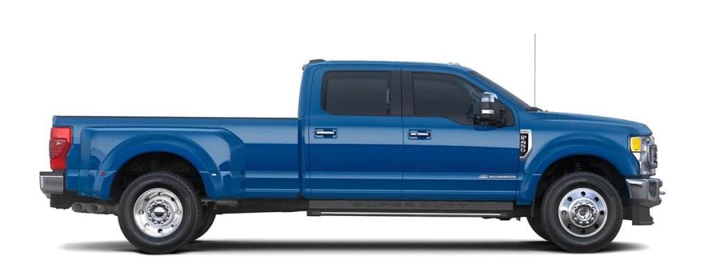 Chez Ford, en Amérique, l’offre en pick-up est largement développée. Les modèles les plus gros, c’est la branche Super Duty, qui inclut les séries F-250 à F-450. On y trouve les pick-ups les plus robustes, capables d’accueillir les charges les plus importantes. Ils peuvent être configurés avec trois formats de cabine. Leur point commun : ils disposent tous d’une benne, ce qui en fait aussi bien un véhicule de travail qu’un modèle familial. Un autre point important : ils peuvent aussi tracter des semi-remorques spécialement adaptées ! Forcément, leur poids à vide est très important et c’est encore plus le cas du F-450 King Ranch ! Quand on lit « King » dans un nom de modèle, c’est généralement parce que le constructeur mise beaucoup dessus et n’a pas fait les choses à moitié.
