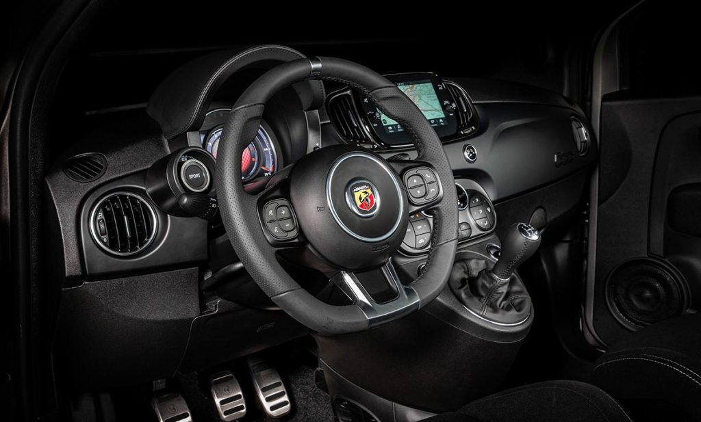 On trouve donc officiellement un moteur de Formule 4 sous le capot de l’Abarth 595. Celui-ci est la version limitée à 165 chevaux. En fait, c’est la mécanique de la version Turismo, commercialisée depuis plusieurs années déjà, avec le turbo Garrett GT 1446. Une mécanique déjà bien connu, associée au choix avec une boîte de vitesses manuelle ou automatique. Dans les deux cas, vous n’aurez que cinq rapports. Le 0 à 100 km/h est assuré en 7,3 secondes et 7,4 secondes si vous optez pour la boîte automatique, réputée pour sa lenteur.
