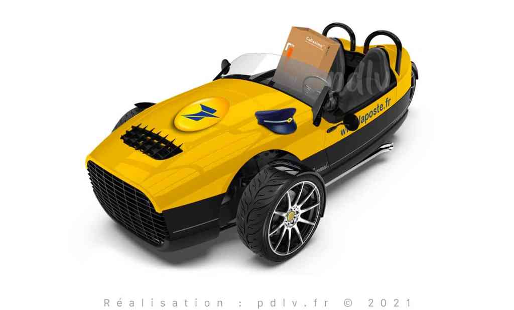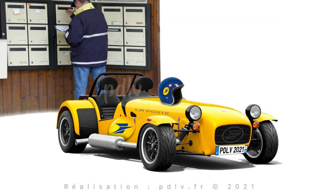 Les Caterham sont des voitures incroyables, avec un rapport poids/puissance exceptionnel. Sur les petits circuits, on peut difficilement trouver un meilleur rapport prix/sensations. Pour La Poste, ce n’est pas forcément le critère premier au moment de choisir un nouveau véhicule. En plus, l’espace pour les courriers est assez modique et gare à ne pas laisser tomber une lettre sur l’échappement latéral sous peine qu’elle ne flambe en quelques secondes. Vous noterez le logo de La Poste qui apparaît dans le nez de cette Caterham Seven 275.