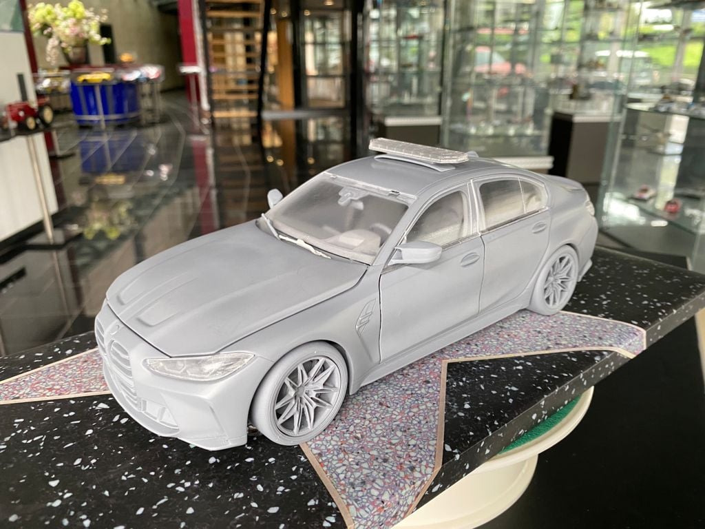 Le prix est déjà connu, suite à l’ouverture des précommandes, notamment chez Modellauto18. Il faudra compter 100 €. C’est un prix dans la moyenne pour une miniature de cette qualité, avec des ouvrants. Sur les photos, vous pourrez apercevoir que la BMW M3 accueille, sur son toit, ce qui s’apparente à un gyrophare. Cela pourrait laisser supposer qu’une telle version verra le jour. En effet, plusieurs BMW M3 et M4 de dernière génération ont été employées en tant que Safety Car lors du dernier MotoGP ! Affaire à suivre !