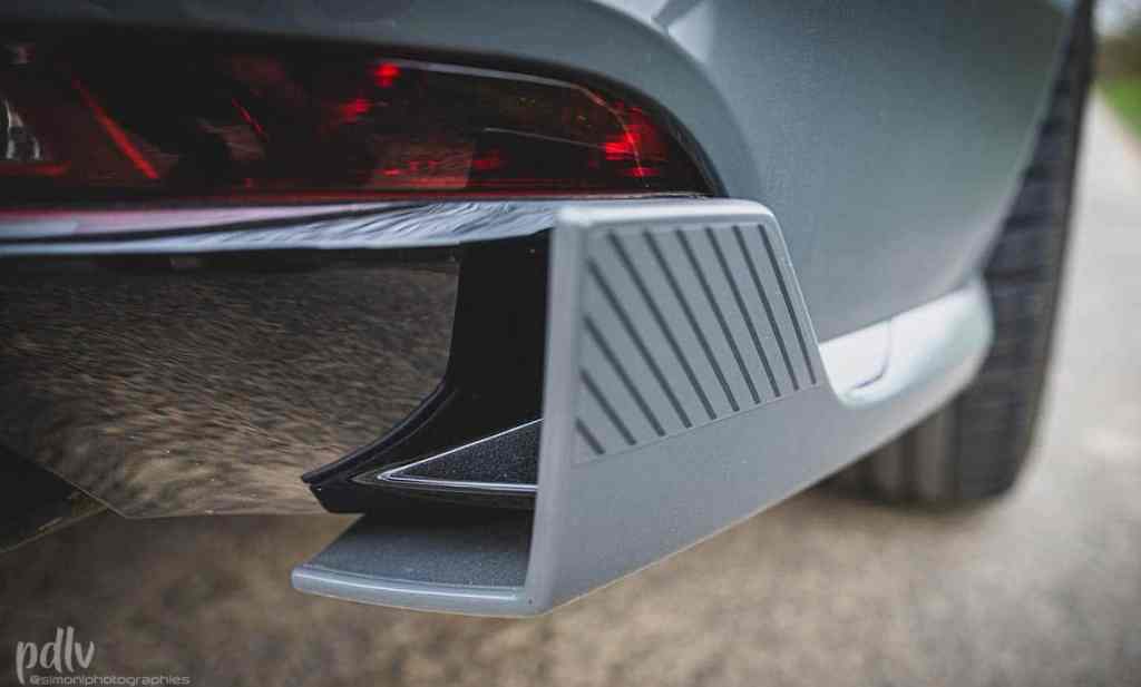 Élue voiture de l’année 2018, la Peugeot 508 de seconde génération est généralement très appréciée. Son design très affirmé va clairement en ce sens. La version PSE reçoit aussi des feux arrière entièrement noirs, qui se fondent subtilement avec le bandeau noir, ce qui renforce encore davantage l’harmonie. On note que tous les chromes ont été passés en noir ; une recette efficace et très tendance pour « sportifier » un design. Et comment ne pas manquer ces jantes Exxar en 20 pouces ? Vous noterez qu’elles sont « presque » entièrement pleines. Toutefois, la marque française est parvenue à réaliser un travail de finition exceptionnel, mêlant du noir brillant, des stickers, de l’aluminium… Bref, là encore, c’est très efficace tout en améliorant l’aérodynamique. Les plus observateurs noteront les gros étriers de frein couleur Kryptonite !