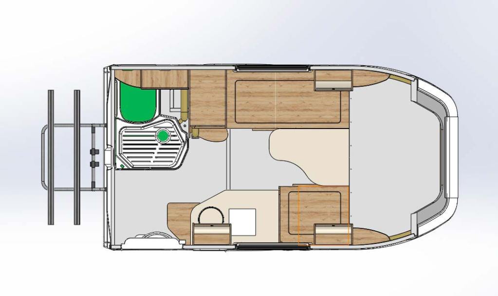 Choisir cette base, c’est la garantie d’alléger le prix de vente futur du camping-car car la Granta est bon marché. Lorsqu’elles arrivent dans les ateliers de Lux Form, les carrosseries sont coupées afin de ne garder que la partie avant. un travail d’adaptation est réalisée afin d’isoler la cabine tout en conservant le châssis nu à l’arrière. C’est là que la cellule habitacle est mise en place. Celle-ci est d’une forme conventionnelle, avec une petite capucine, des vitres, un accès par l’arrière-droit et divers équipements intégrés, comme un porte vélo. Une décoration, composée de stickers est appliquée pour un rendu plus flatteur à l’œil. On pourrait clairement s’attendre à pire même si le résultat n’est pas particulièrement élégant. Mais qu’importe, vous trouverez le meilleur à bord de ce camping-car… rallongé à 4,92 mètres de long !