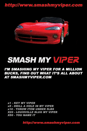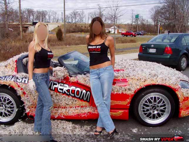 Les deux compères comptent sur l’effet choc pour faire parler du projet. Et cela marche ! Lorsque la première vidéo est mise en ligne, l’accueil est impressionnant. Les vues augmentent assez vite. Dans cette vidéo, on y perçoit deux Dodge Viper RT/10, parées de stickers « Smashmyviper.com » sur les côtés. Celle qui dispose des jantes d’origine n’est là que pour l’apparat, on ne la verra dans aucune autre vidéo que celle de l’introduction. La seconde, posée sur les jantes BBS, est celle qui subira les sévices. Dans des positions suggestives, avec des décolletés plongeants, plusieurs demoiselles ont été recrutées pour faire les mannequins et inciter à dépenser son argent. Car en effet, si vous n’avez pas la possibilité d’aller jusqu’en Virginie, il vous est possible de demander à ce que les dégâts soient infligés par l’une d’elle.