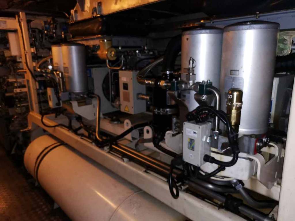 À bord, on trouve deux postes de conduite assez modernes, avec divers écrans et toutes les commandes nécessaires à la conduite d’un train. Vous trouverez logiquement deux sièges, habillés de tissu. Chaque poste de conduite peut accueillir jusqu’à quatre personnes. Ensuite, vous trouverez un couloir central, reliant les cabines, avec les moteurs et tous les équipements électriques.