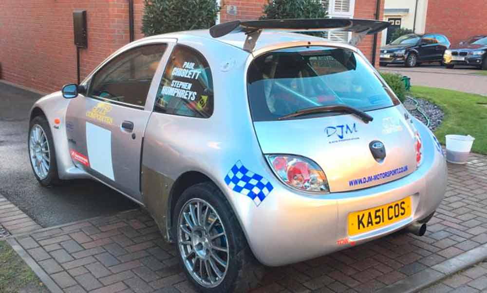Cette Ford Ka bodybuildée, c’est l’œuvre du préparateur DJM Motorsport, basé à Ollerton, en Angleterre. Depuis plus de vingt ans, David et son équipe réalisent des voitures uniques, en jouant aussi bien sur l’esthétique, le châssis que le moteur. Au début, l’équipe s’attelait à transformer des modèles traction en propulsion et parfois même en leur ajoutant la transmission intégrale. Souvent, ce sont des commandes clients qui sont exécutées, sans aucune autre limite que le budget… Parfois, les idées germent dans la tête de Dave et cela aboutit sur des créations atypiques. Dans le cas de cette Ford Ka, il faut savoir qu’il en existe réellement deux exemplaires. Bien qu’elles soient très proches d’esthétique, l’une a été développée pour la route, la seconde pour les rallyes. L’exemplaire proposé ici à la vente est le modèle rallye.