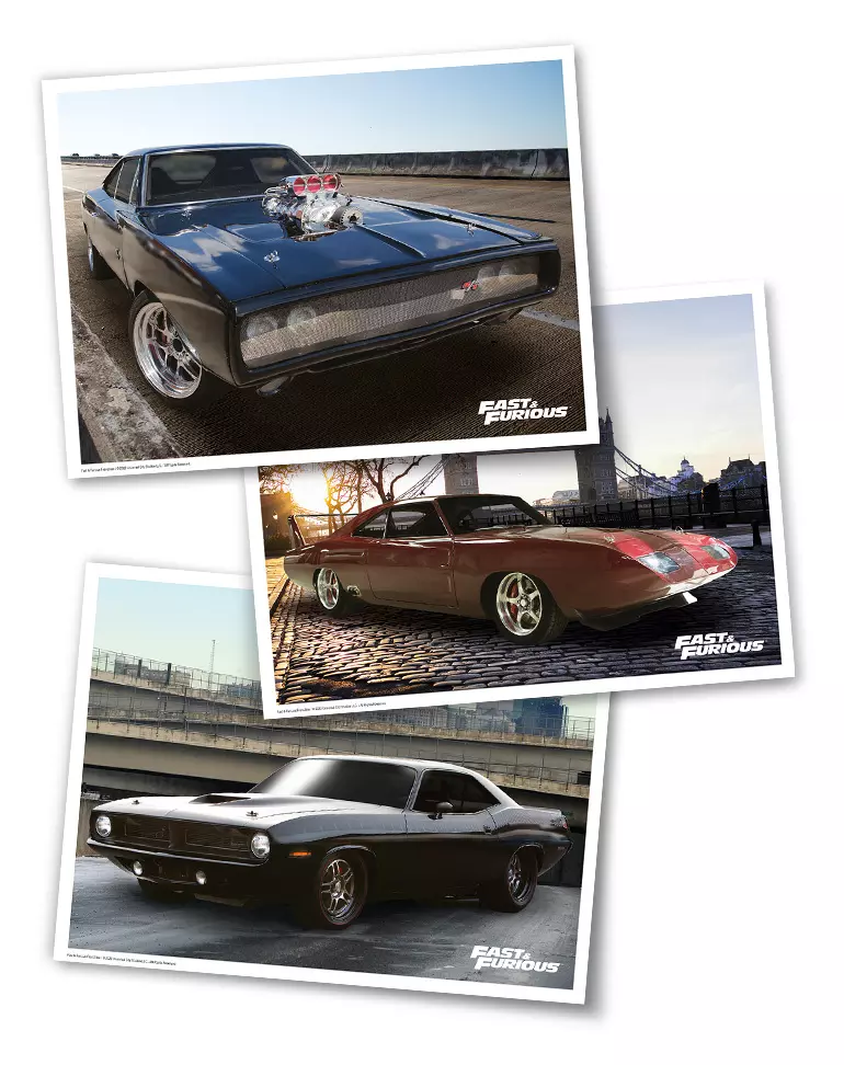 - 4ème envoi : vous aurez trois posters de voitures de film, au format 40 x 30 cm ;