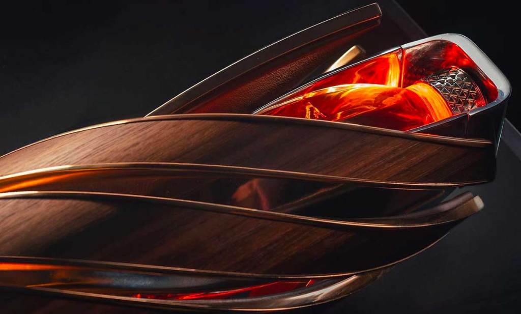 En effet, la bouteille est habillée d’un ornement articulé autour du chiffre 6. Celui-ci fait écho aux six piliers de The Macallan. Pour l’occasion, une forme particulière et très aérodynamique a été élaborée. Elle met en valeur six matériaux emblématiques et récurrents chez Bentley : le bois, le cuir, le verre, le cuivre ou encore de l’aluminium. Ces matériaux sont recyclés et/ou recyclables et proviennent de source éthique. Ils sont été soigneusement assemblés et traités pour fournir un visuel attrayant, moderne et beau. L’objectif ? Mettre en valeur l’innovation et l’artisanat. Le rendu est général est particulièrement raffiné avec de beaux jeux qui permettent de faire ressortir la superbe robe du whisky. Un visuel très chic qui ravira les collectionneurs du monde entier… Et amateurs de bons spiritueux.