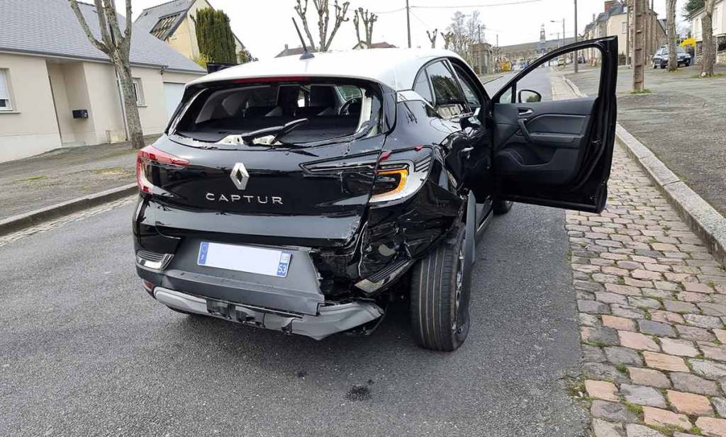 Le choc fait un bruit terrible, on ne comprend pas vraiment ce qui se passe sur le coup d’autant plus que j’étais davantage focalisé sur la circulation à droite afin de pouvoir m’engager. La lunette arrière explose dans le choc et une force importante nous projette en avant. Nous nous arrêterons cinq mètres plus loin, sur la voie d’en face. Je n’aurais jamais pensé avoir des sensations fortes dans un Captur, soyons honnêtes. Dans le choc, tout vole dans la voiture, nos lunettes également. Quelques secondes après, nous entendons immédiatement des sirènes de gendarmerie et pour cause : la caserne se trouvait juste en face et une équipe sortait à ce même moment. Et là, tout se passe très vite, sans que l’on est vraiment le temps de comprendre les choses, on se croirait comme dans un mauvais film, quelques douleurs en plus.