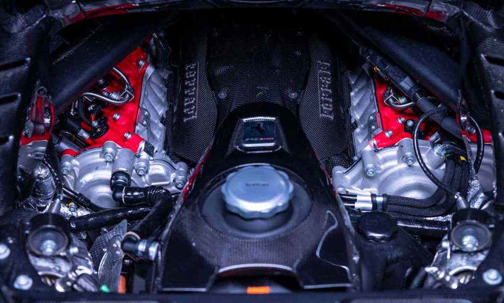 En ce qui concerne le moteur, quelques améliorations ont été portées. Déjà, le V8 biturbo de 4.0 voit sa puissance portée de 780 à 797 chevaux. Cela s’accompagne d’une augmentation de la zone rouge à 7 900 tr/m. La structure même de ce moteur a été revue, pour intégrer un nouvel échappement, de nouveaux pistons, une admission nouvelle. La Ferrari SF90 XX Stradale étant hybride rechargeable, il convient de ne pas oublier cet aspect.