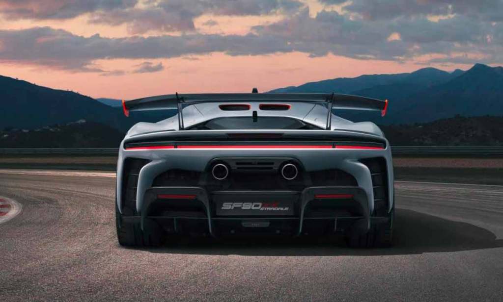 L’arrière évolue encore plus lourdement ! La marque abandonne les feux oblongs au profit d’un liseré lumineux ! Cela modifie profondément la perception du modèle, tout en rendant ce postérieur plus agressif. On notera aussi que les aérations gagnent en volume, tout comme le diffuseur. Tout cela permet d’accroître les aptitudes sur piste. Comme souvent chez Ferrari, la préparation du châssis est souvent plus importante encore que celle de la motorisation. On notera aussi l’apparition d’une version découvrable, en l’occurrence la Ferrari SF90 XX Spider. Celle-ci dispose d’un toit motorisé capable de se rétracter en 14 secondes seulement et jusqu’à la vitesse de 45 km/h.