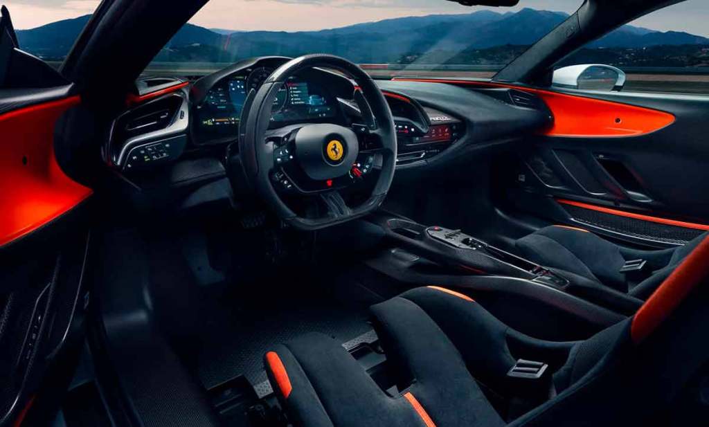 Forcément, les performances s’améliorent davantage encore. Désormais, comptez seulement 2,3 secondes pour passer de 0 à 100 km/h. La Ferrari SF90 XX Stradale a davantage été pensée comme une voiture de course. Elle reçoit d’ailleurs de nombreuses améliorations au niveau des liaisons au sol avec notamment un ABS de nouvelle génération, qui a été inauguré par la Ferrari 296 GTB. On notera qu’un mode « Extra boost » est intégré. Cela permet de bénéficier d’un surplus de puissance pendant quelques séquences, en appuyant sur une touche spécifique. On ne connaît pas l’augmentation de puissance réelle dans ces conditions. Mais selon la marque italienne, cette fonction permettrait de gagner un quart de seconde au tour sur le circuit de Fiorano.