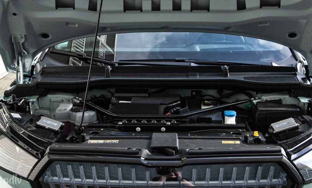 Les jantes de 21 pouces qui équipent notre exemplaire n’altèrent que très peu le confort, qui reste largement acceptable. L’amortissement, même sur chaussée dégradée, est tout à fait correct. Le freinage est également bon malgré les freins à tambour. D’un beau diamètre, ceux-ci s’expliquent par le fait que le freinage régénératif permet de ne pas solliciter beaucoup les freins, surtout ceux de l’arrière. Alors oui, des freins à tambour, c’est très laid mais cela fait largement le travail. Reste qu’en termes d’image, cela fait assez cheap et c’est dommage.