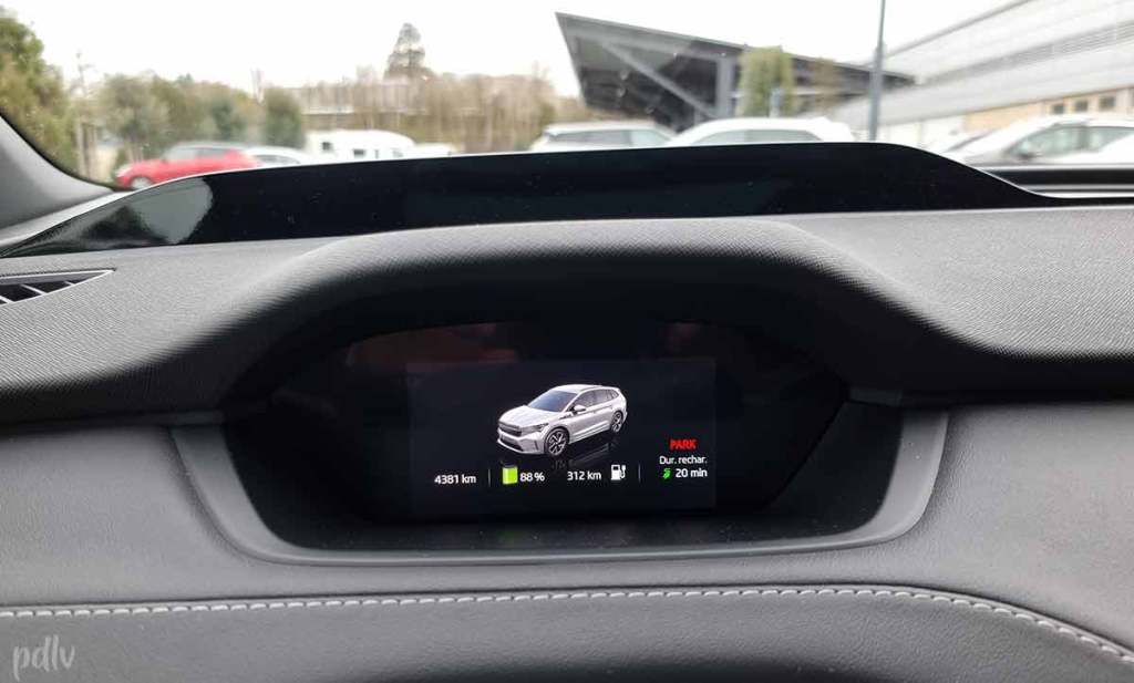 Le Skoda Enyaq iV 80 est donc proposé avec une unique batterie de 82 kW, dont 77 kW utiles. L’autonomie de 547 kilomètres dépend bien sûr du type de parcours et de la conduite. Dans les faits, nous avons davantage été autour des 400 kilomètres, en mixant les types de parcours. Sans surprise, l’autoroute est l’ennemie jurée des voitures électriques. L’autonomie fond littéralement et force à réduire la vitesse. L’autonomie peut alors rapidement être divisée par deux. La consommation est donnée, en cycle mixte, à 16,1 kWh/100 kilomètres, ce qui est correct par rapport au gabarit.