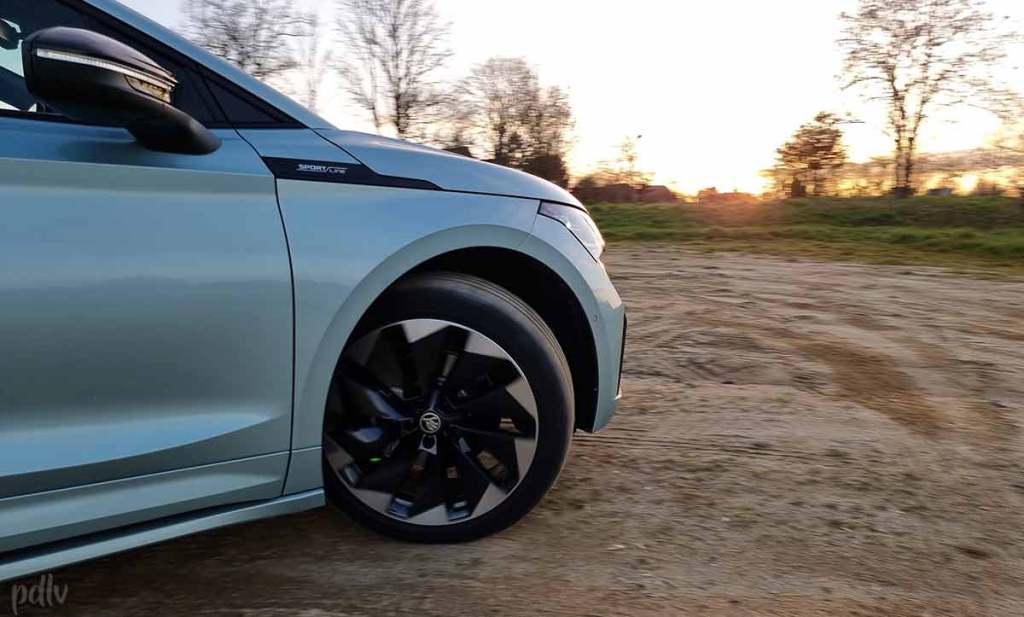 Au niveau du profil, le Skoda Enyaq iV est assez athlétique. Notre exemplaire dispose des grandes jantes optionnelles de 21 pouces. Celles-ci renforcent la sportivité de la ligne. On notera les épais bas de caisse, peints sur notre exemplaire, qui contribuent au dynamisme. Le vitrage est élégant, avec des volumes bien dessinés. Même chose pour la ligne de caisse, joliment ceinturée. Plus on observait cet Enyaq, et plus on arrive à lui trouver de jolies lignes. Dans les faits, il faut vraiment une couleur claire et métallisée pour apprécier le travail des designers. Cependant, tout n’est pas idyllique et l’on peut rapidement bloquer sur les freins à tambour à l’arrière. Un élément habituellement réservé aux petites voitures faiblement motorisées. Malgré la laideur des tambours, ces derniers ont un intérêt autre qu’une radinerie du groupe Volkswagen.