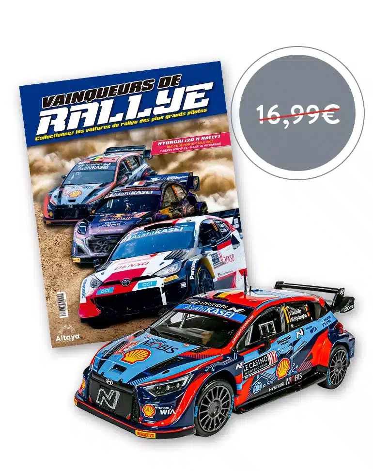 Début octobre, ce premier numéro sera disponible dans les points presse, au prix de 2,99 €. L’objectif est de toucher un public très large afin d’inciter les personnes à s’abonner ensuite. Cette Toyota GR Yaris Rally1 connaîtra sans aucun doute un très fort succès. La thématique du rallye est de toute manière une valeur sûre. Altaya a déjà pu l’expérimenter à de multiples reprises. Les passionnés de cette discipline répondront sans doute présent !