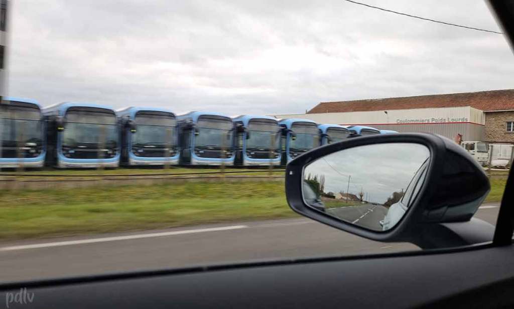 À Paris, l’offre en bus électrique est conséquente… Mais elle est aussi à l’origine d’un fiasco, qui a clairement entaché l’image du bus électrique. En effet, en 2022, deux Bolloré Bluebus 12 ont pris feu dans la capitale, à quelques jours d’intervalle. Cela a amené la RATP à immobiliser l’intégralité du parc, soit 148 unités. Lors de notre essai du Skoda Enyaq, nous sommes passés aux environs de Coulommiers (la ville, pas le fromage) où les Bluebus parisiens sont stockés depuis bien longtemps déjà, le temps de leur vérification par le constructeur.
