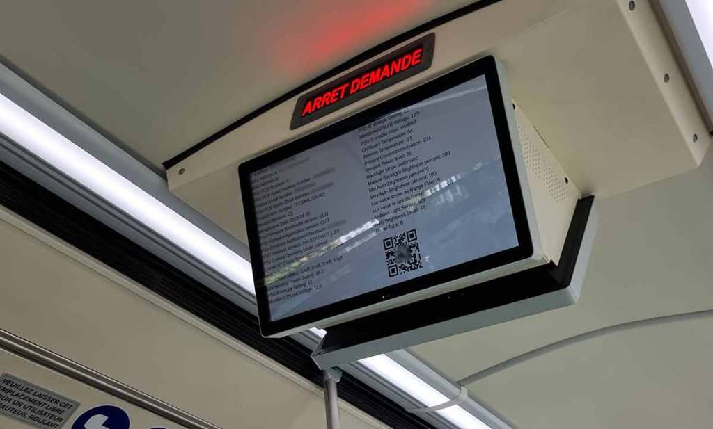 L’intérieur est vraiment très cool. Au sol, on trouve un motif façon parquet, ce qui donne un côté chaleureux qui fonctionne vraiment bien. Les sièges ont une structure blanche et le revêtement s’habille d’un joli turquoise aussi. Les carénages de roue passent en marron. On trouve bien sûr un espace dédié aux personnes à mobilité réduite et aux poussettes. Comme c’est de coutume, la porte 2 accueille une rampe PMR déployable électriquement depuis le poste de conduite. Autant dire que c’est un sans-faute pour l’intérieur. Hormis bien sûr quelques petits détails, comme l’écran intérieur qui affiche un message d’erreur en continu ou bien la girouette qui ne fonctionne pas sur le 603, remplacée par une feuille de papier vert sur laquelle est inscrit un grand B tracé au feutre. Cela sera bien sûr corrigé d’ici peu !