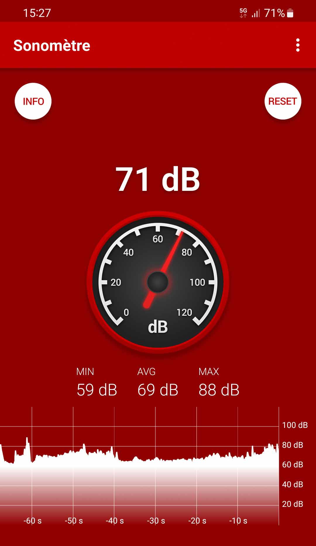 | Niveau sonore moyen | 78 dB | 77 dB | 69 dB |