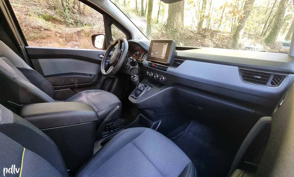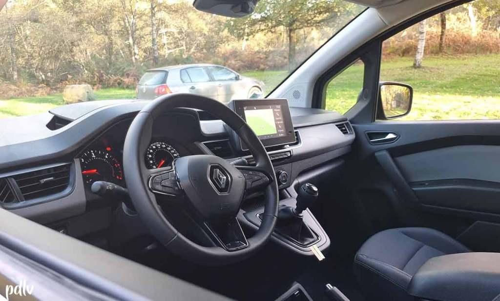 L’écran central, d’une diagonale de 8 pouces, accueille le système multimédia Easy Link et notamment le GPS. Il prend en charge Android Auto et Apple CarPlay. Ce n’est pas le système le plus réactif mais cela fait le travail. Notre exemplaire, en finition Extra Sésame Ouvre Toi dispose d’une finition plus poussé. On trouve notamment une sellerie cool avec du simili cuir, des surpiqûres blanches et des touches de jaune. On est bien loin du vieux Kangoo d’antan !