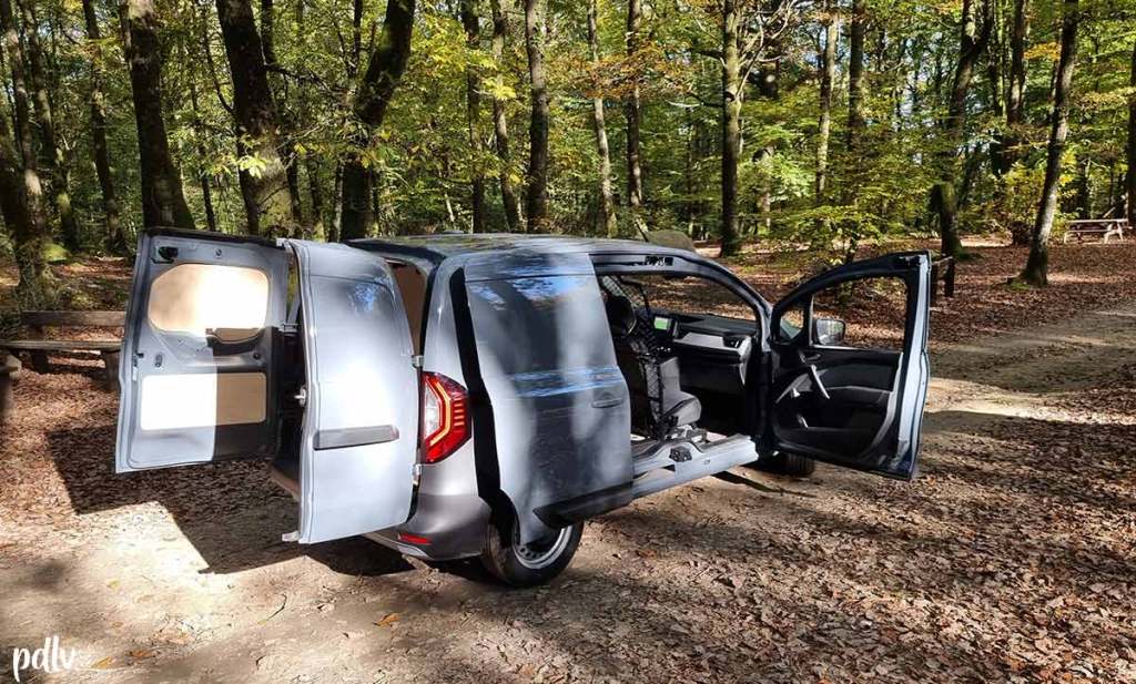 Si nous désirons acheter un utilitaire, c’est avant tout pour l’aménager, afin de pouvoir réaliser des prises de vue en toute sécurité. La porte latérale coulissante est idéale pour cela. D’ailleurs, le Kangoo 3 est disponible avec des moteurs essence, Diesel et même électrique. Dans notre cas, c’est une version Diesel de 95 chevaux qui nous a été confiée. Et cela fait plutôt bien le travail ! C’est un cœur de gamme qui tient ses promesses et qui est à l’aise partout.