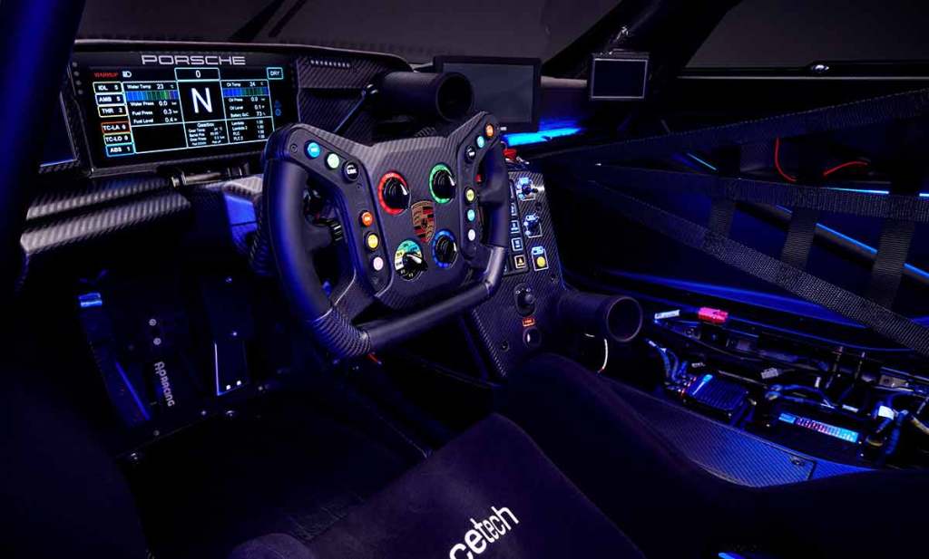 D’ailleurs, les heureux acheteurs pourront profiter de réglages spécifiques, notamment au niveau des suspensions. Des pneus spécifiques sont aussi proposés tandis que l’on trouve un système de freinage AP, dissimulé derrière des jantes BBS de 18 pouces, au design exclusif. Porsche a cherché à proposer un design à la fois authentique et sportif. Si un point d’honneur est mis sur l’aérodynamique, le style a aussi grandement son importance. À bord, l’ambiance est résolument racing. On trouve un unique siège baquet, un arceau et tout l’écosystème propre au modèle GT3 R. Il y a un grand écran de 10,3 pouces et des écrans latéraux, qui assurent la rétrovision.