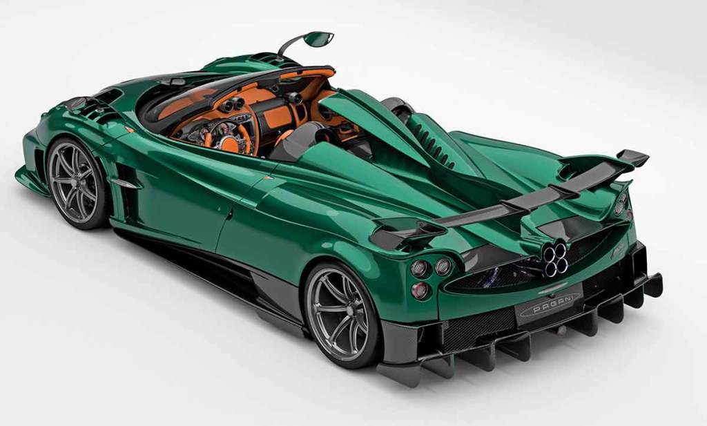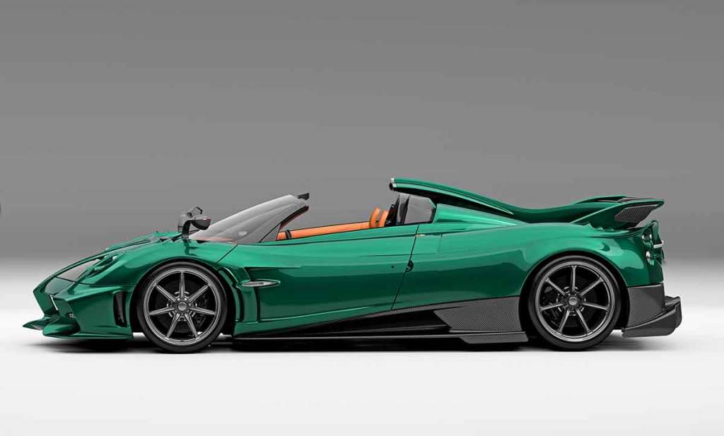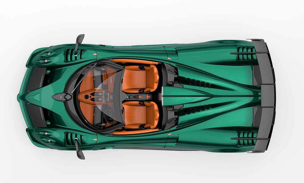 La version de présentation, qui semble être un rendu 3D, avec une couleur de carrosserie somptueuse, en l’occurrence un superbe vert métallisé. Quant à l’habitacle, il revêt des tons marrons du plus bel effet, renforçant le côté très chic des Pagani. Car oui, les Pagani ont un habitacle très luxueux, avec des matériaux bruts joliment assemblés et une très belle finition. Par ailleurs, les sièges monocoques ont également une structure en fibre de carbone. Une quête d’excellence qui se vérifie à chaque nouveau modèle.