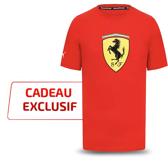 - 24è envoi : un t-shirt officiel de l’équipe Ferrari vous sera envoyé uniquement si vous faites partie des 1 000 premiers abonnés ;
