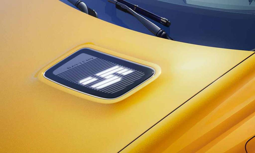 Fait amusant également, en lieu et place de la grille originale du capot de l’ancienne, la nouvelle arbore un écran, légèrement surélevé. Dessus, on trouve un motif strié et le chiffre 5 qui apparaît. En fonction du nombre de bandes affichées, celui-ci indique le numéro de charge de la batterie. Malin ! À l’arrière, on retrouve les lignes du concept mais le bouclier a été redessiné. Il est plus classique dans sa présentation. Un essuie-glace arrière a aussi été ajouté. On appréciera aussi le travail des feux, qui sont en 3D, avec de multiples stries. Le tout répond à des contraintes aérodynamiques (notamment). Par exemple, le design des jantes permet de gagner 8 kilomètres d’autonomie. Pour les feux arrière, c’est 6.