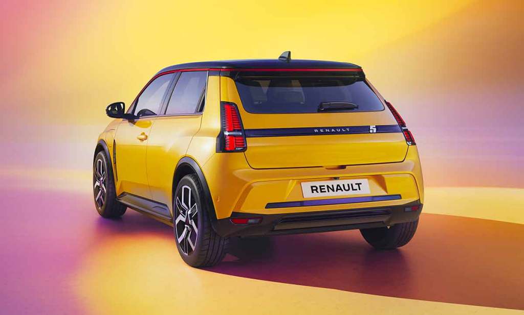 Il faut aussi préciser que cette nouvelle Renault 5 s’inspire autant de la R5 « classique » que de la version Turbo. De cette dernière, on notera le jonc coloré sur la partie supérieure du vitrage. Sa couleur varie en fonction de la couleur de carrosserie et de la finition. Le design des feux arrière, élargi visuellement sur la partie extérieure, fait aussi écho à cette précédente version sportive. Le design des jantes est également très structuré. Malgré des lignes classiques, la marque au losange a réussi à proposer un modèle qui correspond bien à la philosophie de cette nouvelle citadine électrique. D’ailleurs, toutes les versions sont d’office montées sur des jantes de 18 pouces. On ne sait pas encore si les jantes alliage seront de série sur toutes les versions.