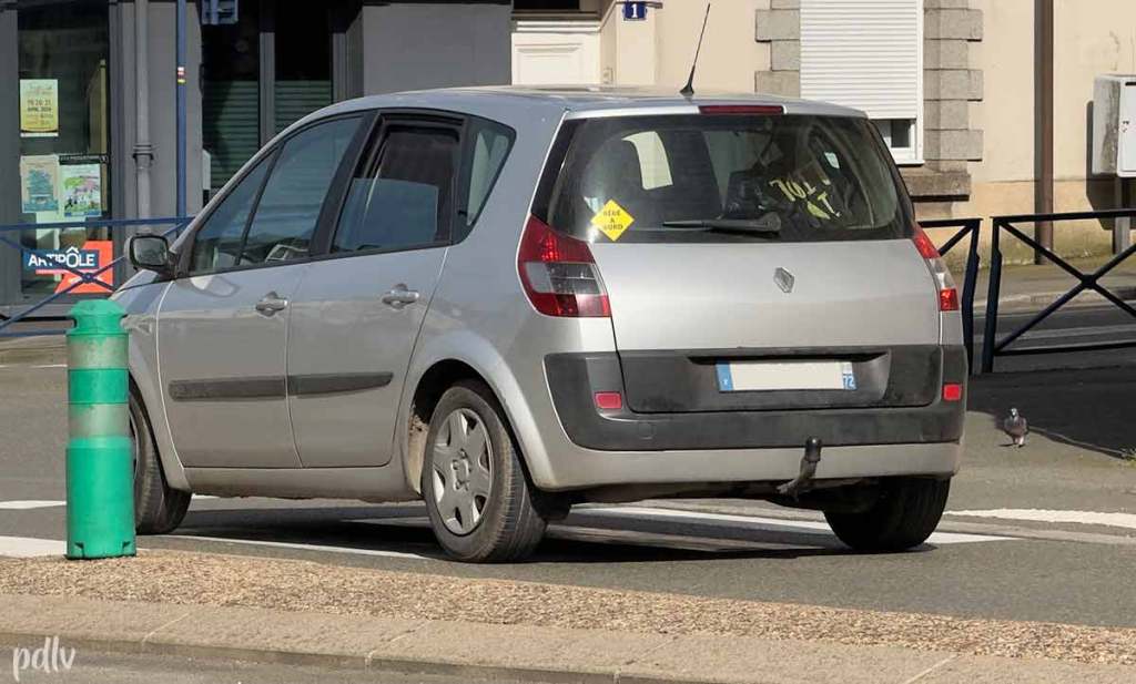 À l’origine, vous aviez posé ce sticker à l’arrière du Scénic car un heureux événement venait de se produire. Dix-huit ans plus tard, cet heureux événement vient d’obtenir le droit de vote et son propre permis de conduire. Mais qu’importe, vous laisserez le sticker Bébé à bord, peut-être par flemme de le retirer car c’est bien collé ou bien dans le but d’espérer la clémence des autres conducteurs, en espérant que l’on ne vous colle pas de trop près. La légende dit que ce Scénic partira à la casse en ayant toujours ce sticker. D’ailleurs, en parlant de casse…