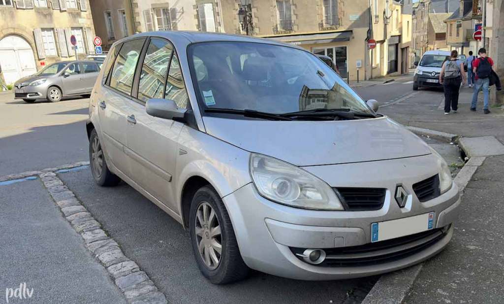 Au fil du temps, l’attention accordée au Scénic de deuxième génération a diminué. D’un côté, nous avons celles et ceux qui prennent un grand soin de leur véhicule. Souvent, c’est un joli modèle, doté d’une belle peinture métallisée et avec un moteur sympa. De l’autre, les Scénic 2 qui ne remplissent qu’une fonction « déplaçoire ». Le monospace est purement réduit à sa simple fonction de moyen de transport. Il subira les petits dommages du quotidien et ne s’approchera plus vraiment d’une station de lavage. L’unique lavage aura lieu tous les deux ans, juste avant le contrôle technique, dans l’espoir d’amadouer le contrôleur. Spoiler : ça ne marche pas.