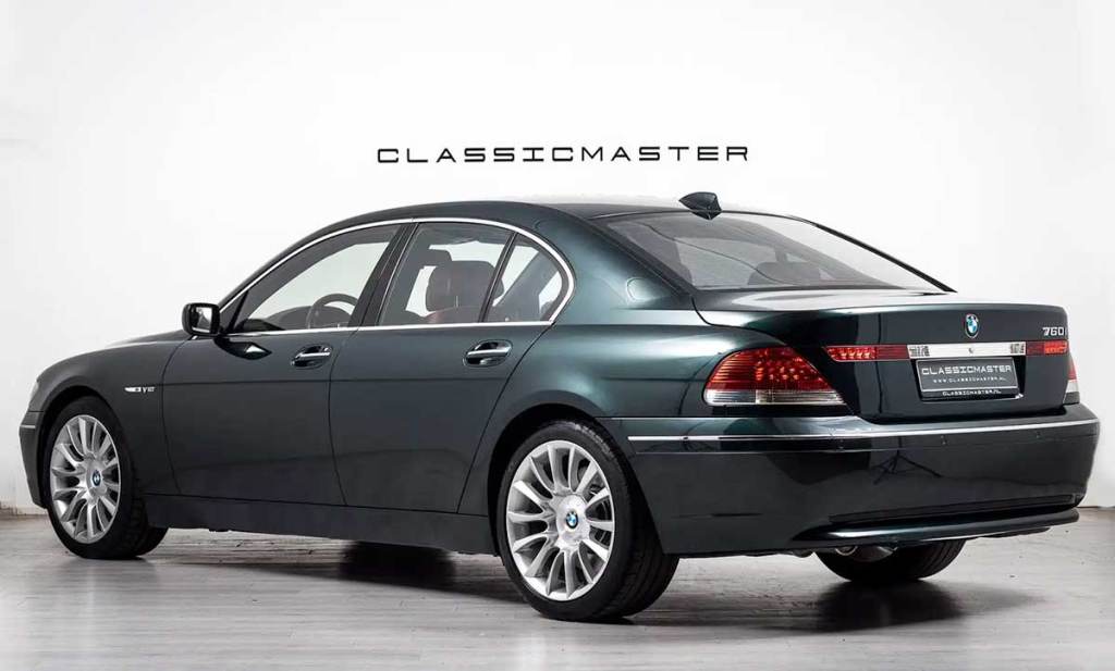 S’offrir une BMW Série 7 à moteur V12, c’est souvent la concrétisation d’un rêve. Une routière à la fois confortable et puissante, avec la sonorité délicieuse d’un bon gros 12-cylindres. D’ailleurs, ce n’est pas la première fois qu’une Série 7 dispose d’une telle motorisation. C’était déjà le cas sur les deux générations précédentes, des types E32 et E38. L’exemplaire ici proposé à la vente est une version « classique » longue de 5,04 mètres. Produite en 2003, elle appartient donc à la première série. Le client qui l’a commandée a pioché de nombreux équipements issus du catalogue BMW Individual. On découvre une couleur de carrosserie vert foncé métallisé du plus bel effet avec un intérieur marron. Une configuration très élégante qui met bien en valeur cette routière de prestige.