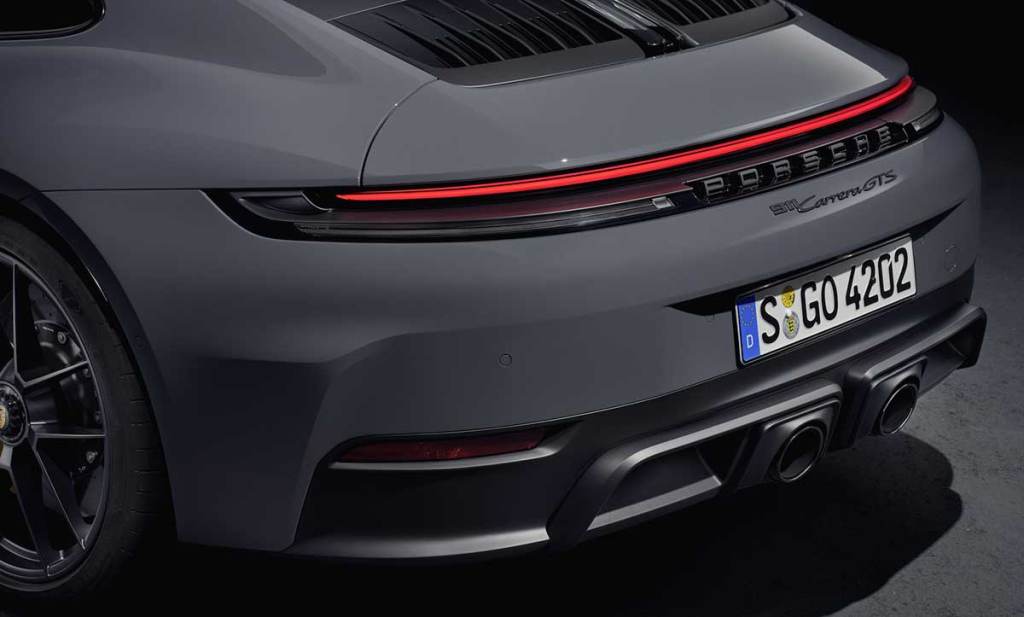 Actuellement, la gamme n’a été dévoilée que très partiellement. L’entrée de gamme Carrera est de la partie, ainsi que les versions GTS. Ces dernières reprennent le look traditionnel de ces versions sportives avec toujours de belles jantes noires avec écrou de serrage central. Elles se distinguent désormais par des clapets actifs des deux côtés du pare-chocs avant. Quant au moteur, il est entièrement nouveau mais il conserve naturellement son architecture 6-cylindres à plat. La cylindrée grimpe à 3.6 litres grâce à une augmentation de l’alésage (à 97 mm) et de la course (à 81 mm), portant la puissance à 485 chevaux pour la partie thermique pure. Il perd d’ailleurs un turbocompresseur, n’en ayant plus qu’un désormais. Désormais hybride, ce moteur est logiquement complété par une partie électrique.