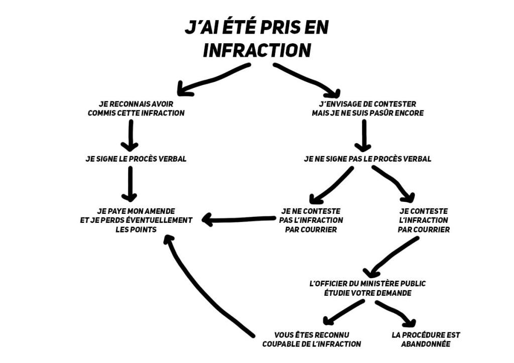 - Paiement ou contestation : le contrevenant peut choisir de payer l’amende, reconnaissant ses torts ou bien de contester directement la nature de l’infraction par l’intermédiaire d’un courrier adressé à l’Officier du Ministère Public ;