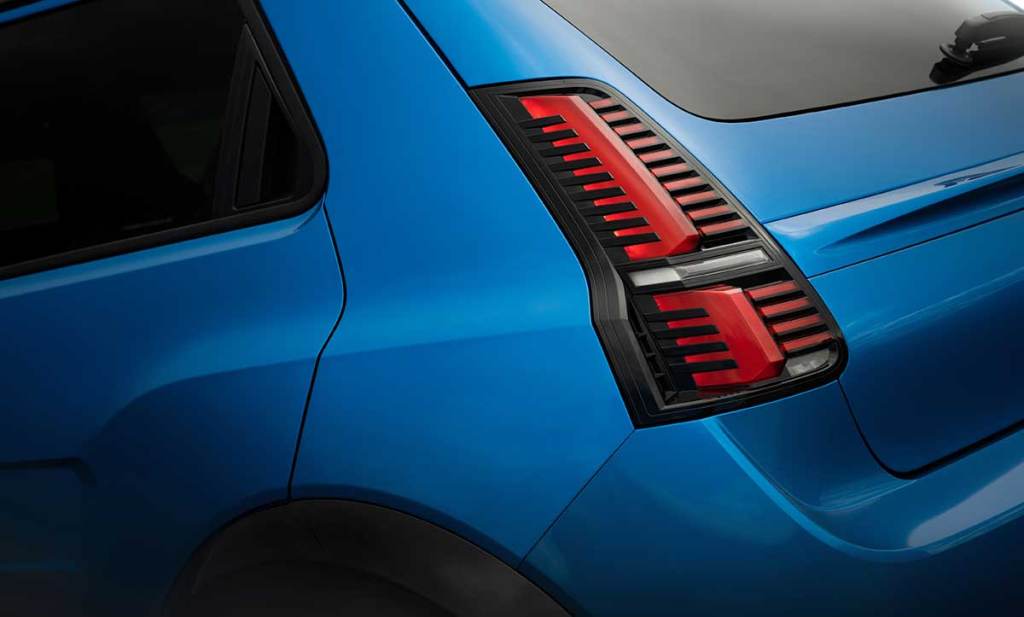 On retrouve aussi les quatre phares Full LED, incluant les feux additionnels frappés du « X » lumineux. Cela fait directement écho aux voitures de rallye des années ’70, qui arboraient un adhésif en croix. Sur le capot, on perd également l’indicateur du niveau de charge de la batterie, qui n’aurait pas convaincu le panel d’acheteurs potentiels. Forcément, on découvre aussi une jolie teinte bleu Alpine Vision mais il sera aussi possible de choisir une belle traditionnelle livrée blanche, noire ou en gris mat. De profil, on retrouve les ailes encore plus largement galbées que celles de la Renault 5, avec un travail supplémentaire au niveau des ailes arrière, sur les portes. Cela semble faire écho aux aérations latérales des Renault 5 Turbo.