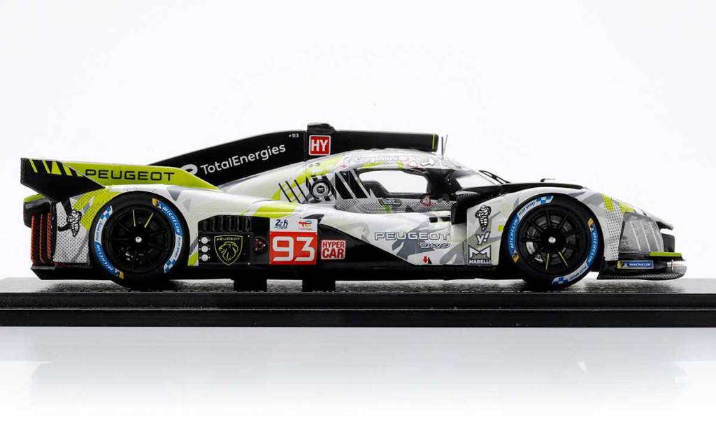 Et pour la décoration, là encore, c’est tout simplement superbe de réalisme. Dans un premier temps, seule la 9X8 numéro 93 est proposée. Elle a été conduite par Jean-Éric Vergne, Mikkel Jensen et Nico Müller et a terminé en 12e position. Juste devant au classement général, la numéro 94 n’est pas encore disponible à la commande, mais cela devrait arriver sous peu. Prévoyez un budget de 85 € pour vous offrir cette belle nouveauté à l’échelle 1/43. Pour l’obtenir, rendez-vous sur la boutique Peugeot Lifestyle dès maintenant. Spark a pris l’habitude de modéliser l’intégralité du plateau des voitures qui participent aux 24 Heures du Mans ! Un must have pour les fans de la célèbre course sarthoise qui réunit, chaque année, plus de 300 000 personnes. Peugeot Sport Engineered (PSE) arrêtera malheureusement la production de voitures de série d’ici peu…