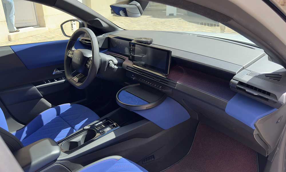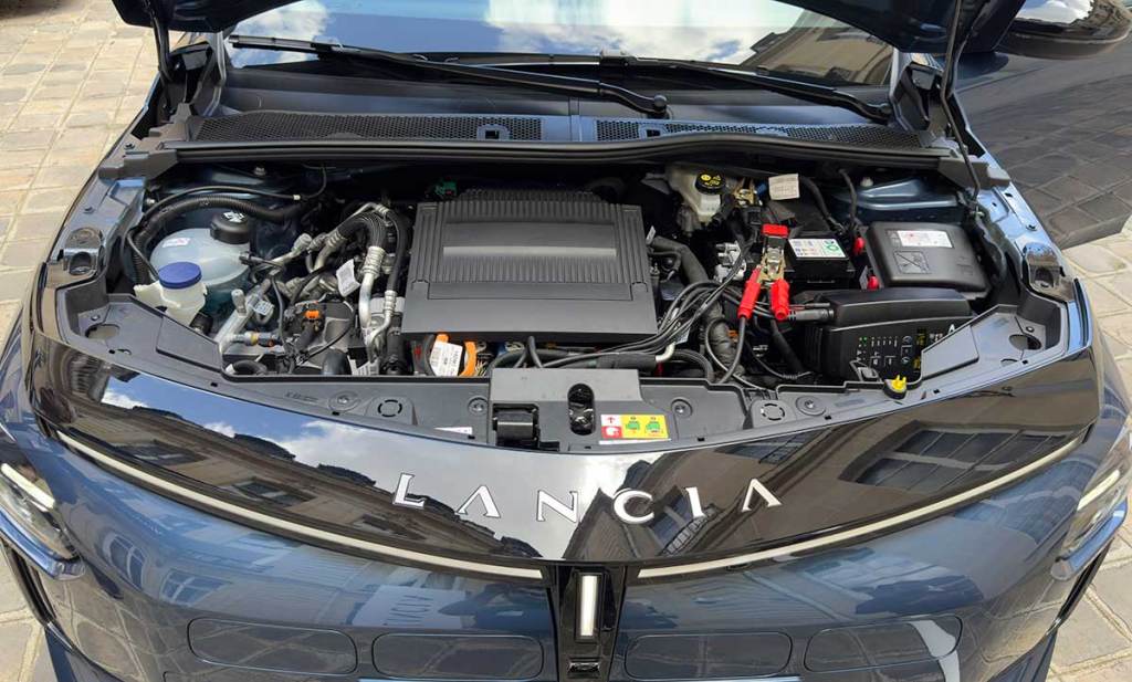 On retrouve aussi de jolis tapis colorés. Lancia a redessiné les boutons ainsi que les écrans. L’interface numérique S.A.L.A est propre au groupe Stellantis mais inutile de s’attarder sur ce point : le développement est toujours en cours. Bref, on se sent vraiment bien dans cet intérieur même si l’on retrouve des éléments connus, comme le sélecteur de vitesses commun avec Peugeot. Mais est-ce vraiment si important que cela ?