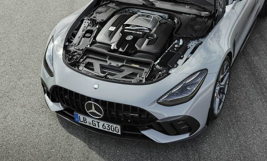 Le moteur V8 profite d’un gain de 50 Nm de couple, atteignant désormais 850 Nm. Sur l’exercice du 0 à 100 km/h, on reste toujours à 3,2 secondes tandis que sur l’épreuve du 0 à 200 km/h, cinq dixièmes sont gagnées avec un honorable score de 10,9 secondes. La vitesse de pointe atteint désormais 317 km/h, soit 2 petits km/h de plus que l’AMG GT de 585 chevaux. Malgré tout, l’optimisation a été plus poussée qu’il n’y paraît en intégrant un nouveau système de refroidissement (intégrant deux radiateurs supplémentaires sur le dessus des différentiels des essieux), des jantes forgées de 21 pouces et en améliorant le freinage.