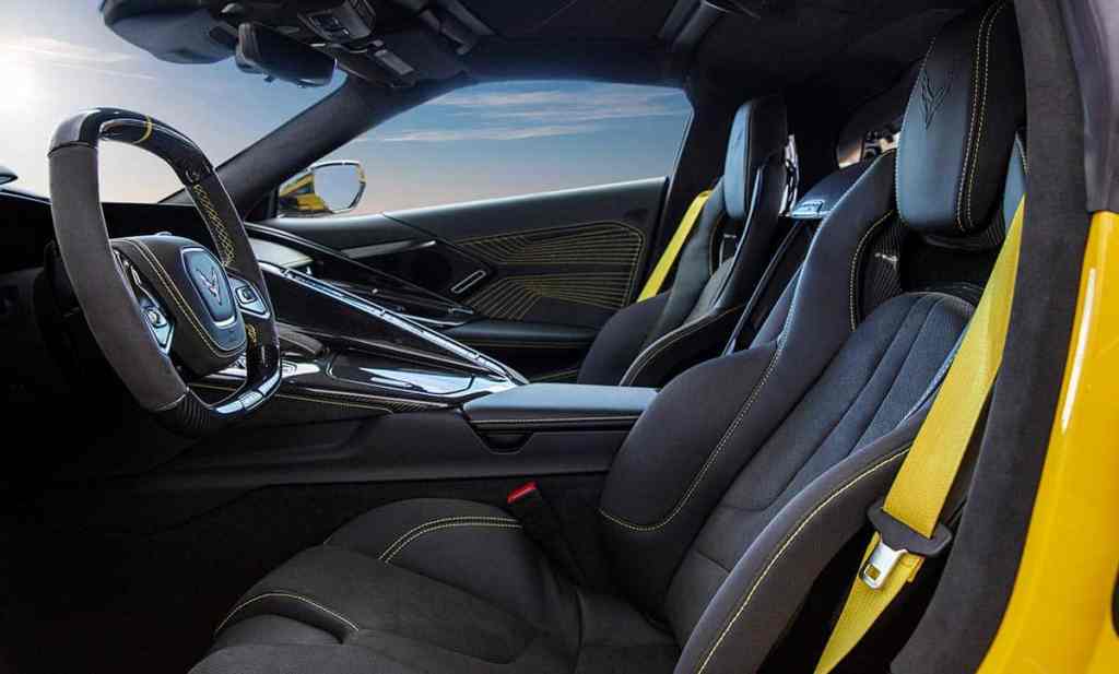 En parallèle, la Corvette C8 ZR1 dispose du jaune Compétition comme couleur de présentation. Une teinte emblématique qui rappelle celle des différentes Corvette engagées dans la course d’endurance. La marque en profite pour apporter deux nouvelles teintes, étendues au restant de la gamme : le violet Hystéria et l’orange Sebring. Côté performances, on ne connaît pas la valeur du 0 à 100 km/h… Mais cette Corvette de tous les superlatifs, qui restent une stricte propulsion (avec une boîte séquentielle à 8 rapports) pourrait approcher des 2,2 à 2,3 secondes. Quant à la vitesse de pointe, elle est de 345 km/h. De nombreuses options de personnalisation sont possibles, notamment au niveau de l’habitacle.